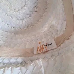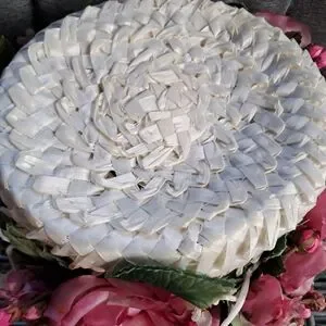 Vintage straw women’s tall pill hat decorated with large pink and white flowers