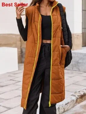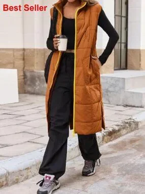 ✨ Long Quilted Puffer Vest for Versatile Layering
