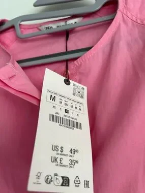 Zara Bright Pink Puff-Sleeve Button-Down Blouse