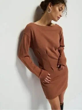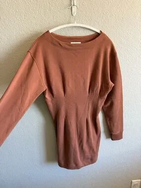Nation Los Angeles Ronni Mini Dress in Tobacco Brown 100% Cotton Fitted Small