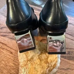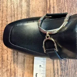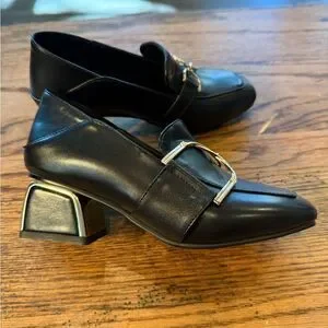 Black Leather square Toe Loafer Heels Gold Hardware Size 5 NWOT
