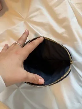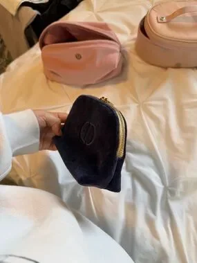 Dior navy velvet cosmetic pouch with gold-tone zipper.