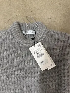 Zara Light Gray Textured Mock Neck Sweater