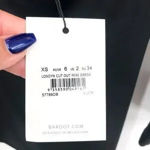 BARDOT Women's Londyn Cut Out Mini Dress XS Black Bodycon Stretch NWT