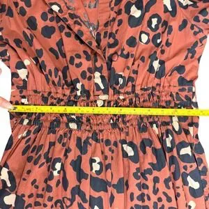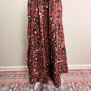 Anthropologie Maeve Somerset Leopard Maxi Dress Brown Smocked Waist Pockets Sml.