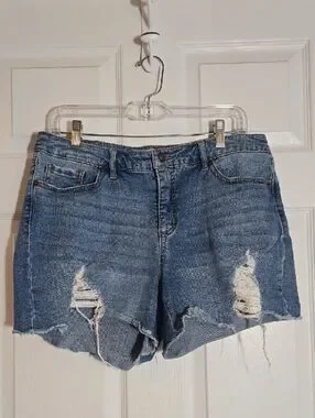 Sofia by sofia vergara Distressed High-Rise Denim Shorts - Blue Size 12
