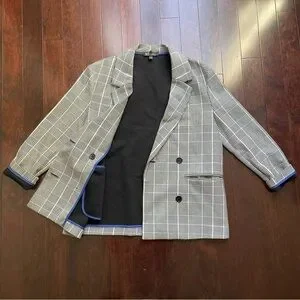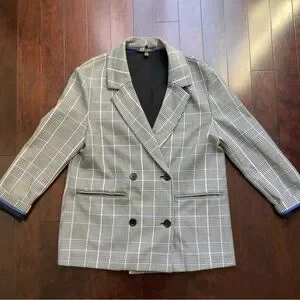Zara Women’s Blazer Plaid Size S-M Gray Black Blue