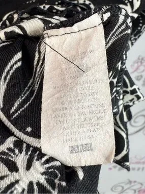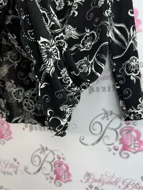 Long sleeve Black & White Long Sleeve Floral Drape Neck Women's Top Lightweight