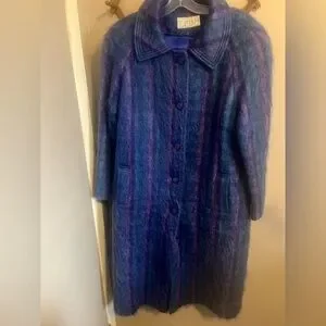 Fashion Gallery Blue Purple Mohair Wool Plaid Longline Coat M