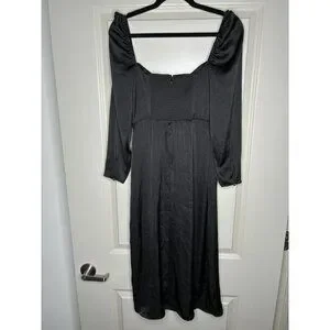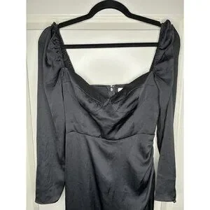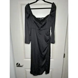 Aritzia Wilfred Satin Masquerade Dress in Black Size 4 Longsleeve Midi High Slit. Excellent condition, only flaw is there is a little bit of adhesive on the inside of the bust from bra tape