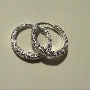 These brand new elegant silver hoop earrings add a touch of sophistication to any outfit. Perfect for both casual and formal occasions.