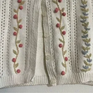 Vintage Brynn Connelly Pointelle Knit Floral Embroidered White Sweater Vest Cottage Grandmacore