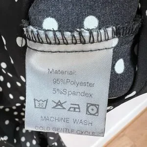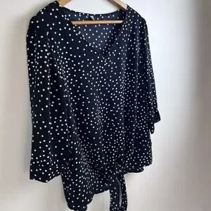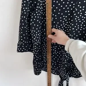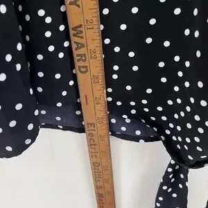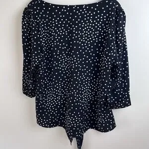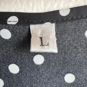 Black Women's Blouse Classy Polka Dot Shirt Dressy Work Flattering Size Large