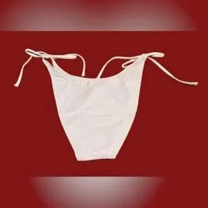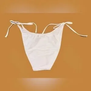 NWT Ribbed Curved-Waist Cheeky String Bikini Bottom in Pale Blossom Pink, Small