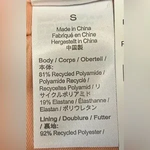 > FABRIC: Shell: 81% Recycled Nylon and 19% Elastane. Lining: 92% Recycled Polyester and 8% Elastane.