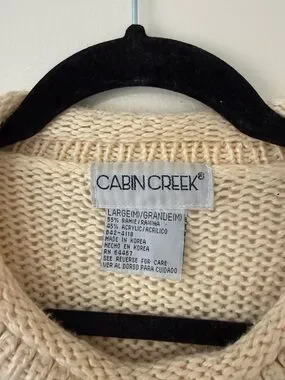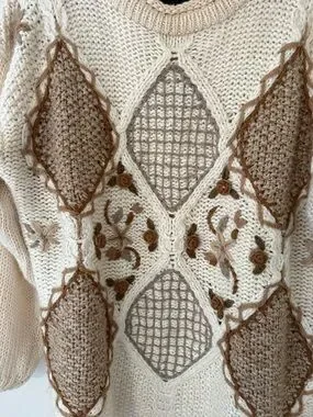 Vintage 90s Sz Lg Cottagecore Grandma Knit Chunky Neutral Sweater Patchwork Tan