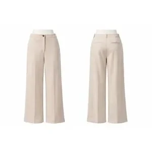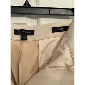 Ann Tylor Kate High-waisted trousers crafted from a soft, faux suede fabric in a versatile cream beige hue. These pants feature a sophisticated wide-leg silhouette with a clean front, single button closure, and functional side pockets. The back is detailed with darts for a tailored fit and decorative welt pockets, making them an ideal choice for both professional settings and elevated casual wear.