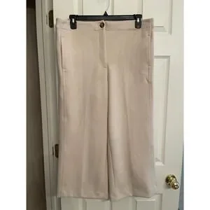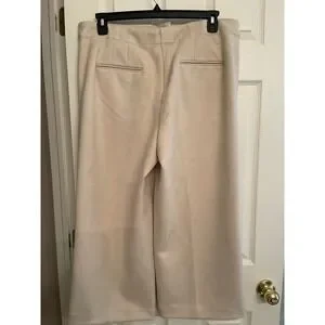 Ann Taylor Kate Women's Faux Suede Wide Leg Pants Cream High Rise Size XL