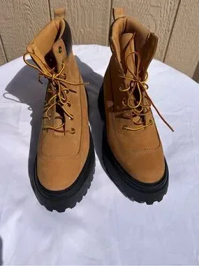 Timberland Sky 6-Inch Lace Up Wheat Nubuck Leather Platform Boots Women's