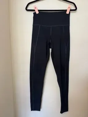 High-rise leggings in solid black. Streamlined seams for a flattering fit. Stretch fabric offers supportive compression. Smooth waistband stays put during movement.