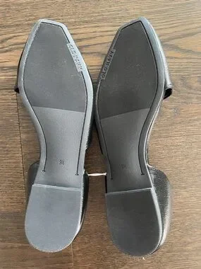Classic black Dorsay flats with a squared toe. Cushioned footbed for comfortable wear. Clean, versatile style for everyday outfits.
