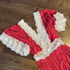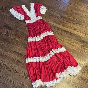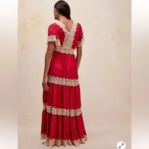 Stun in this undeniably gorgeous gown designed in an exclusive collaboration between Spell and the Gypsy Collective x Free People featured in a silky fabrication with tiered bottom and exaggerated lace trim throughout for an added vintage design.