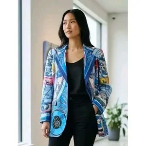 ETRO $2420 Colorful Multi-Print Silk Italian Blazer