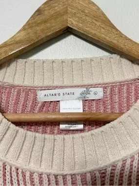 Altar’d State Pink Striped Sweater Size Large Chenille