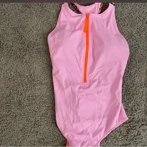 Pink One-Piece Swimsuit with Orange Zipper