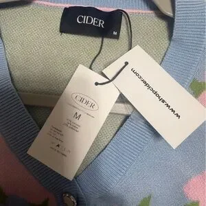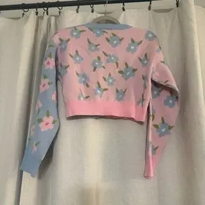 NEW Cider Two Tone Button Up Floral Faux Pearl Crop Cardigan
