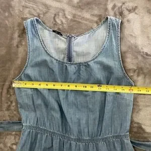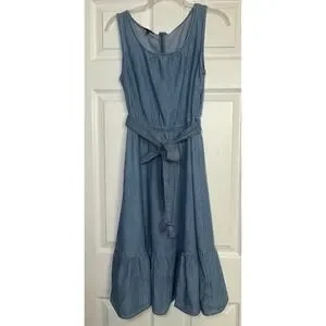 Talbots Denim Dress Women Size 4 Blue Sleeveless Chambray Tassel Belt Ruffle Hem