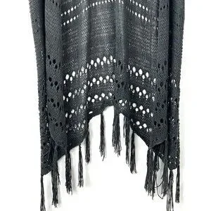 Womens Sleeveless Long Crochet Shawl Open Cardigan Cover Up Fringe Gray Sz S