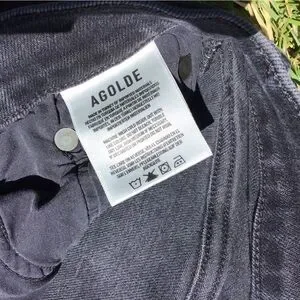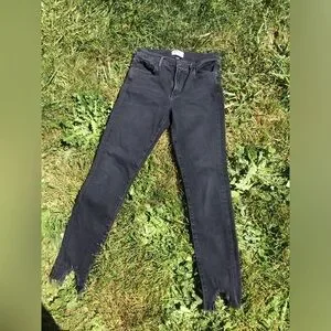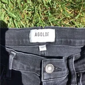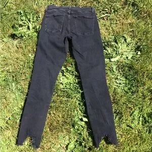 AGOLDE Sophie Mid Rise Black Ankle Skinny Jeans Distressed Hem Denim Size 27