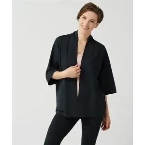 New Anybody M French Terry Open Front Topper Kimono Black #75263
