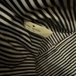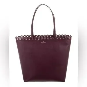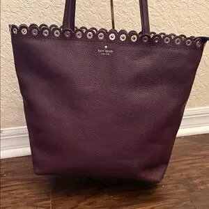 Elevate your style with this chic Kate Spade designer tote, featuring an elegant scalloped edge. Made from premium pebbled leather and adorned with gold hardware, this bag is both sophisticated and durable. The top zip interior showcases a stunning black and white stripe pattern, complete with a convenient zipped pocket for your essentials. There’s a minor callout on one corner that’s hardly noticeable, but overall, this tote is in fantastic condition. Perfect for daily use, it effortlessly adds a touch of elegance to any outfit.