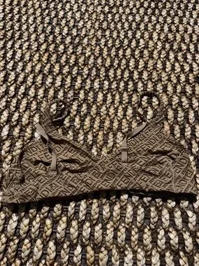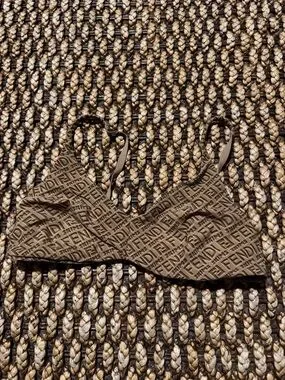 Soft scoop bikini top with embossed logo texture. Stretchy, smooth fabric for daily comfort. Thin adjustable straps.