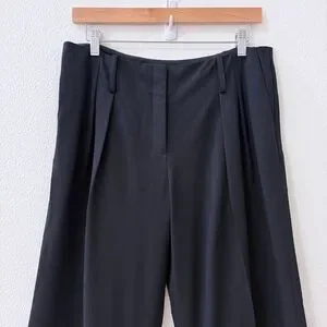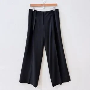 LAFAYETTE 148 Black Stretch Wool Pleated Wide-Leg Dress Pants Trousers 8 Wyatt