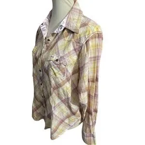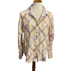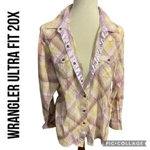 Wrangler Ultra 20X Fit Plaid Multi-Color Button Down Snap Jewel Buttons w/ Laven