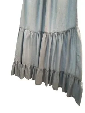 Vince Camuto Sleeveless Light Blue Tiered Maxi Dress Airy Beach Casual Boho Sz L