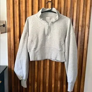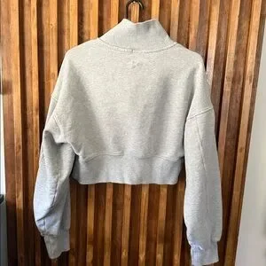 aerie Light Gray Quarter-Zip Cropped Sweatshirt