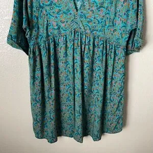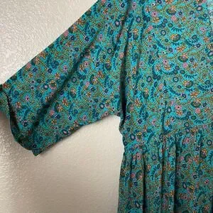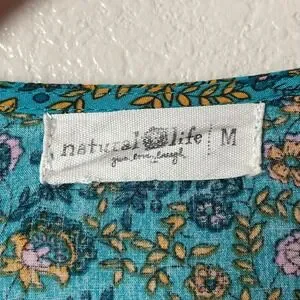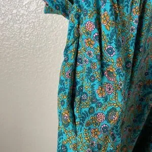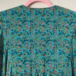 Natural Life Dress Womens Medium Teal Stella Floral Mini Babydoll Pockets Boho