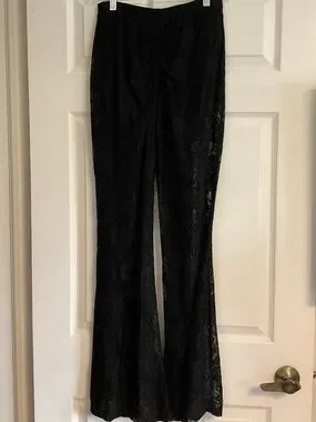 These sexy lace sheer pants have a flare bottom and elastic waist.
