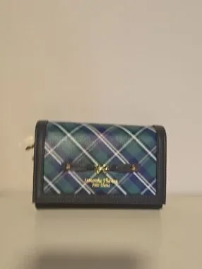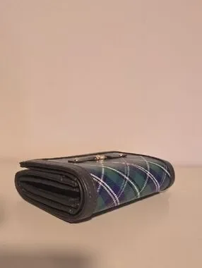 Samantha Thavasa Green and Navy Plaid Wallet with Black Trim