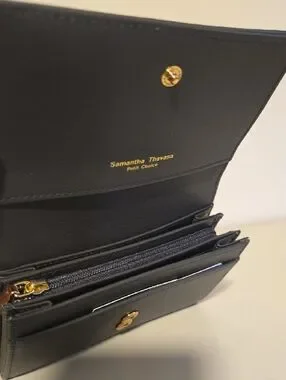 Samantha Thavasa green plaid wallet with contrast grey trim. Elegant bow detail and gold-tone hardware for a refined look. Compact, stylish, and perfect for everyday use.