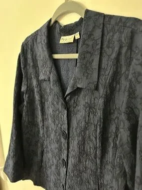 Habitat Shirt Women’s L Navy Floral Boho Lagenlook