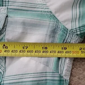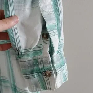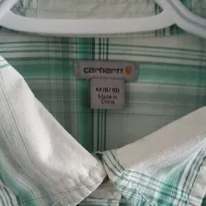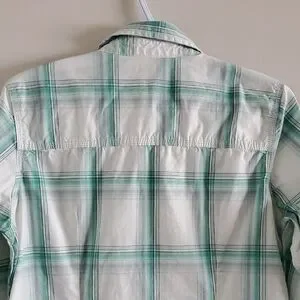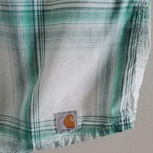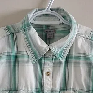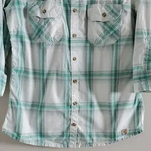 Carhartt Women's White and Green Plaid Button Down 3/4 Sleeves Shirt Size M