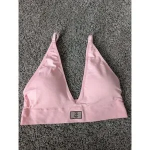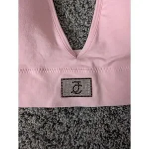 Juicy Couture Pink Seamless Rhinestone Logo Bralette V-Neck Adjustable Straps M