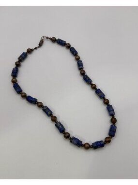 A striking vintage lapis lazuli and sterling silver necklace with a classic Southwest aesthetic, thoughtfully composed with rich blue stone and traditional bench bead accents.