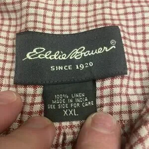 Upgrade your wardrobe with this stylish Eddie Bauer 100% linen short-sleeve button-down shirt! Crafted from premium linen, this shirt offers breathability and comfort, perfect for warm weather.