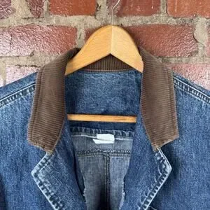 Vintage Lee Coat Womens Large Blue Denim Corduroy Collar Chore Workwear Barn